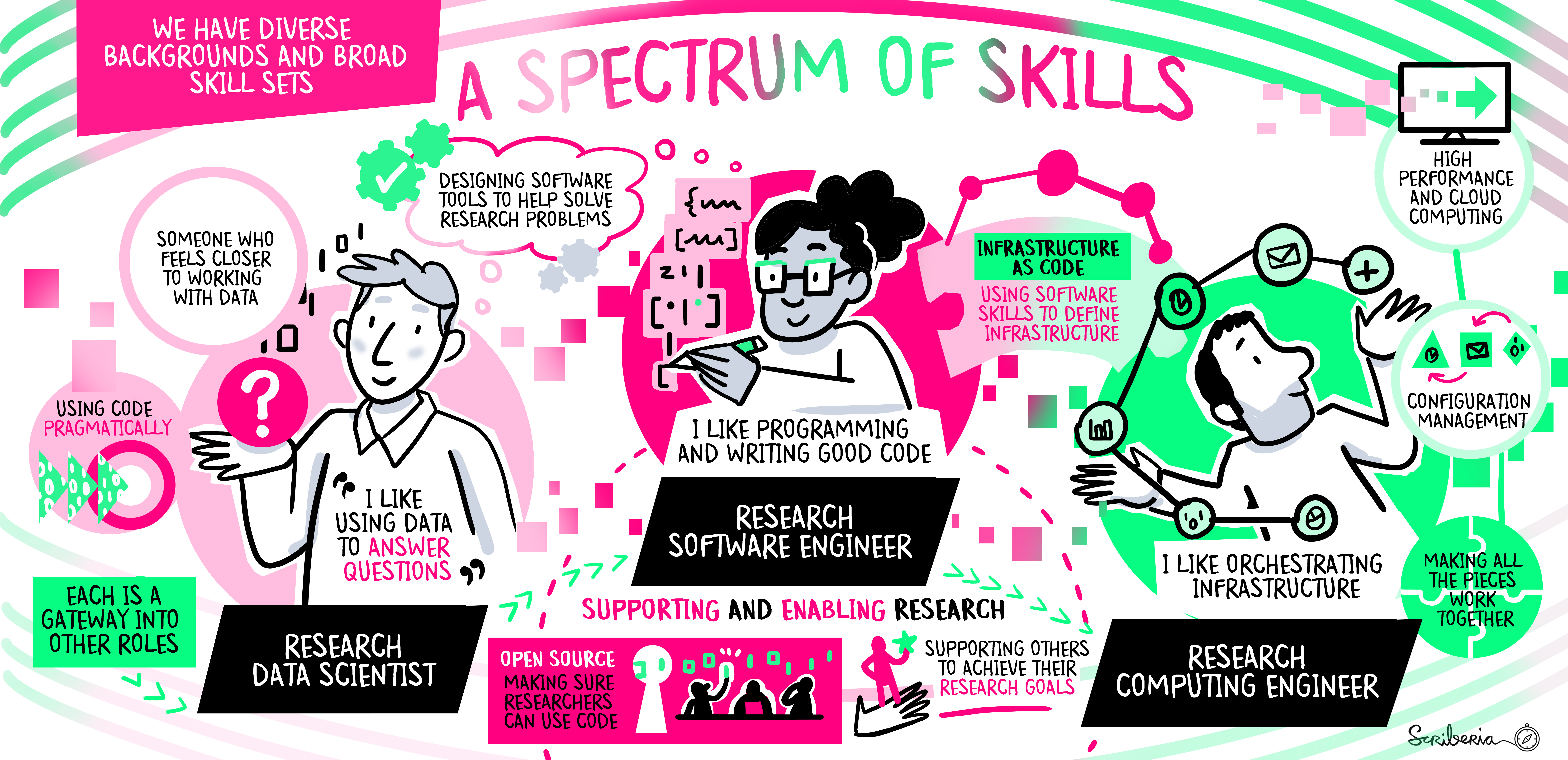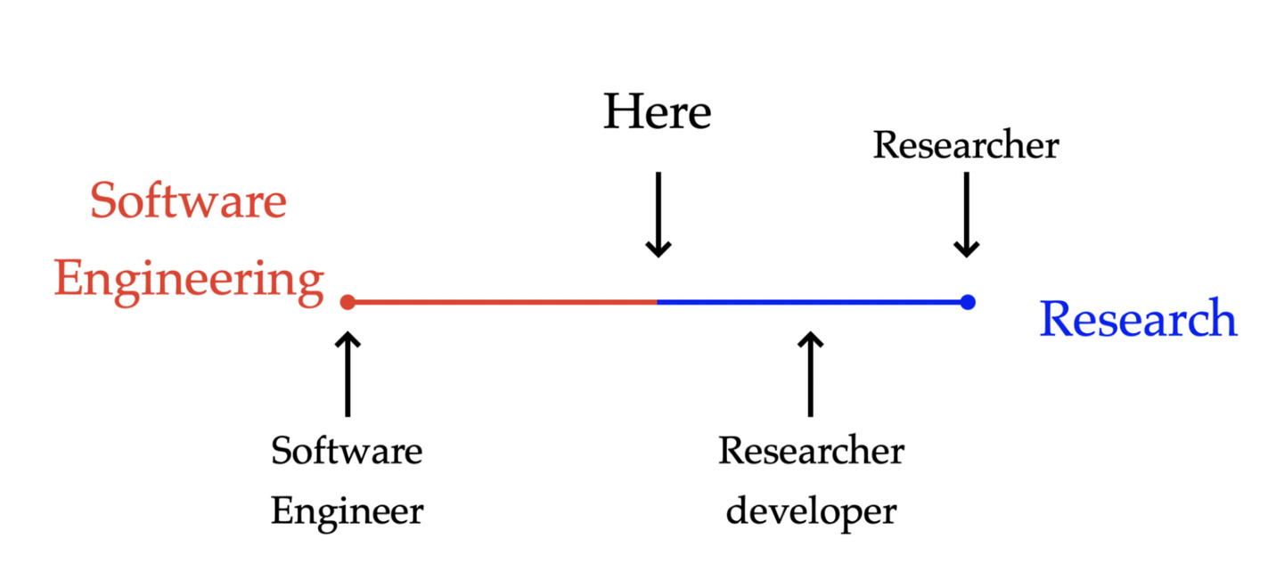 Research Software Engineers includes researchers who spend a significant amount of time programming, full-time software engineers writing code to solve research problems, and those somewhere in-between.